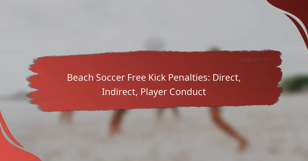 In beach soccer, free kick penalties are crucial elements that can significantly influence the outcome of a match. Direct free kicks allow players to shoot directly at the goal for specific fouls, while indirect free kicks require the ball to touch another player before scoring. Additionally, player conduct plays a vital role in the execution of these kicks, as adherence to rules promotes fair play and discipline on the field.